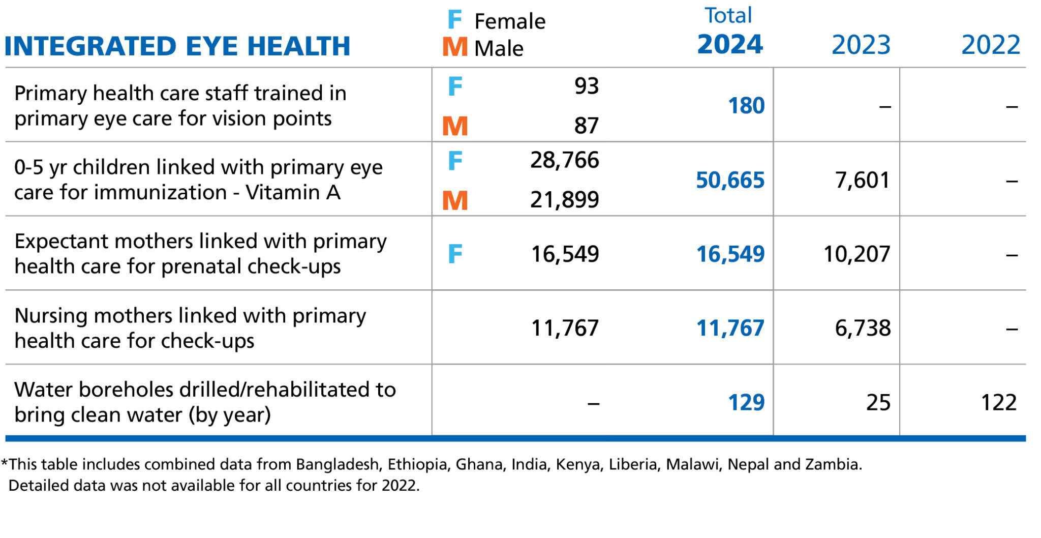 In some regions in Africa, we also bring fresh water and hygiene education to communities, to help prevent the spread of trachoma, a blinding eye disease.